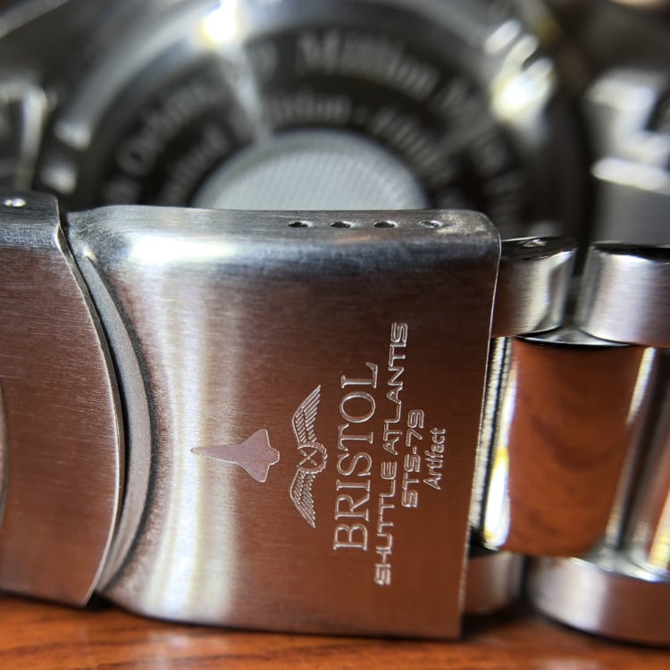 The Space Shuttle Atlantis flew 33 missions into space This exceptional timepiece is a tribute to the Atlantis and features a precision machined stainless steel case and displays an original space-flown artifact flown aboard the Atlantis. The movement is a precision Swiss made chronograph with a Super Luminova dial protected by a scratch-resistant sapphire crystal. This design is limited to 1996 units in honor of the year the material displayed in the watch case was flown in space on STS-79, orbiting the earth 160 times and traveling 3.9 million miles.